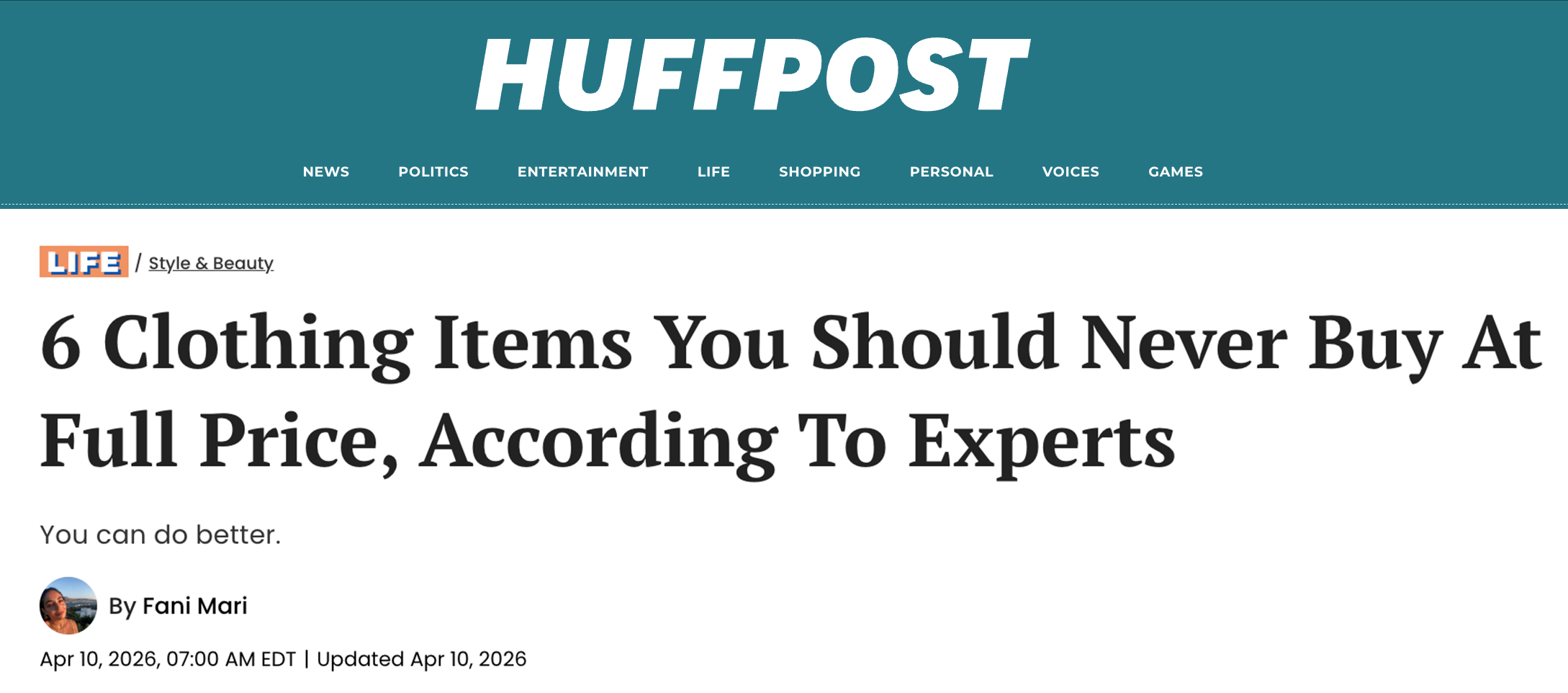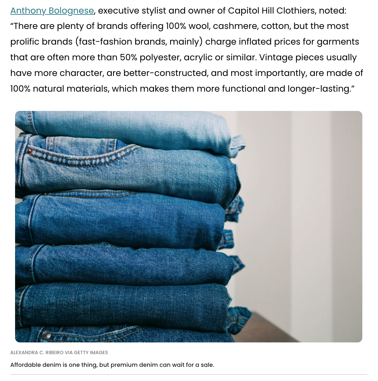 Huffington Post - Expert Commentary on Fabric Quality in Current Fashion