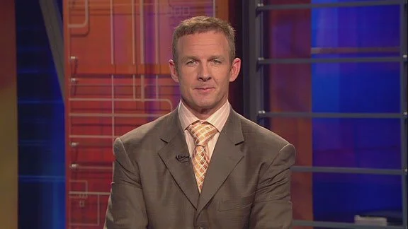 A tie knot that is far too large for the wearer and his dress shirt collar