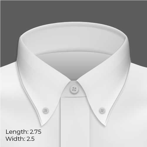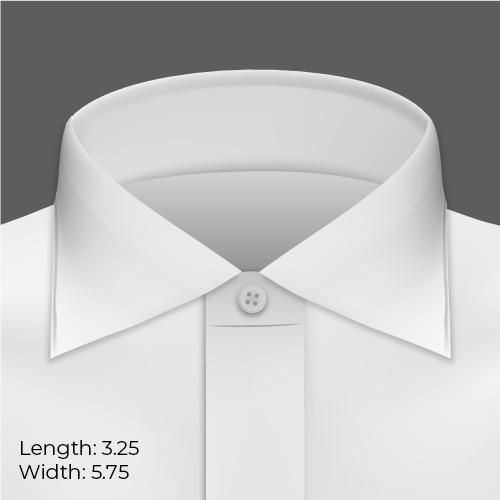 This is what we call the quintessential dress shirt collar. It’s structured, has enough height and width to accommodate most normal tie knots, and is usually an easy selection for those who just want a dress shirt, no frills, no hassle. It works for most body shapes and sits properly with or without a tie.
